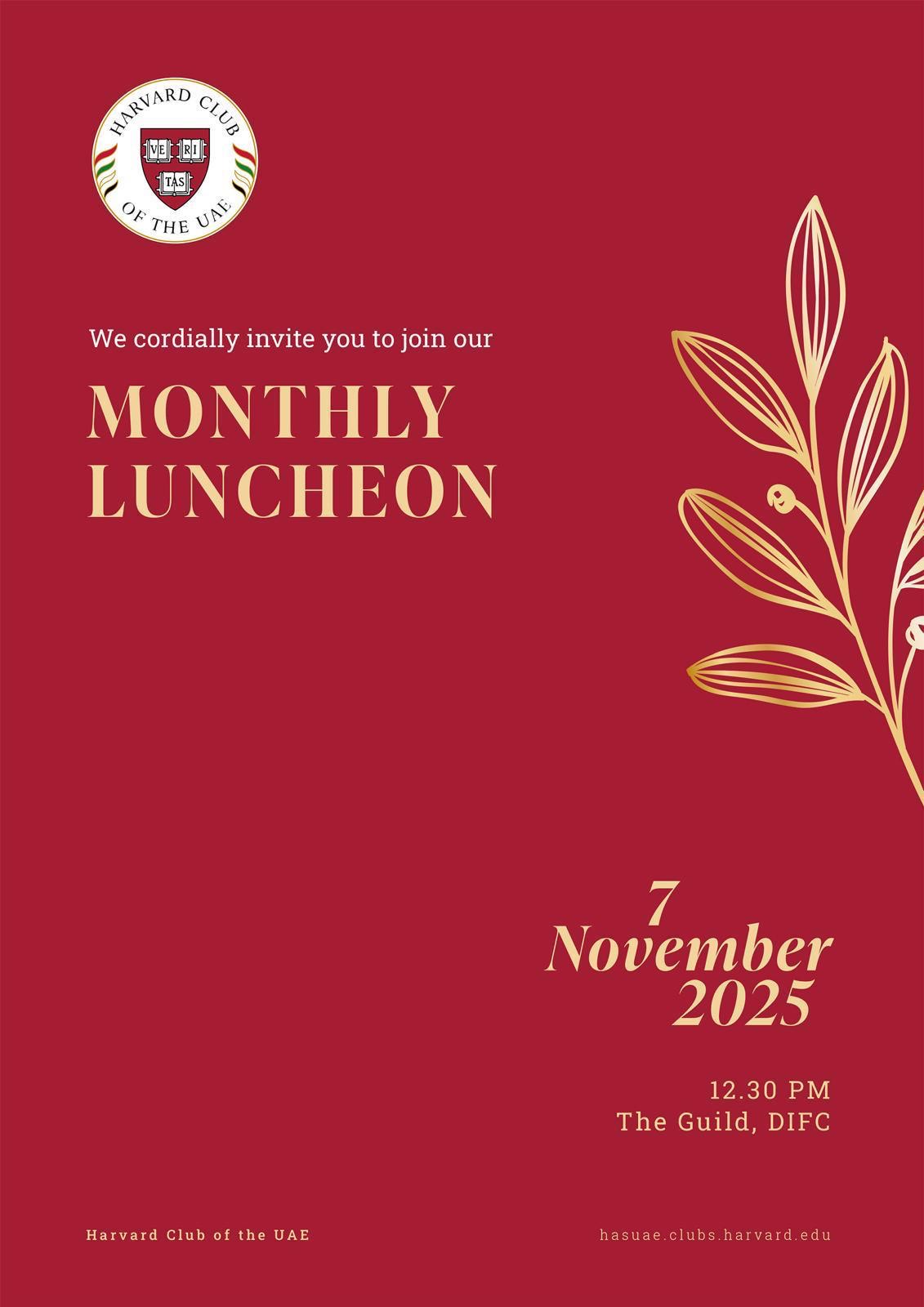 Join us at the Guild in the DIFC for the monthly Harvard luncheon. -